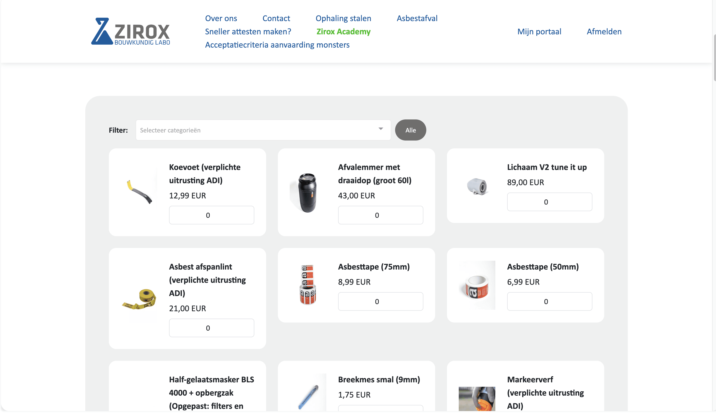 In het analyseportaal vindt u onze materiaalshop, waar u: